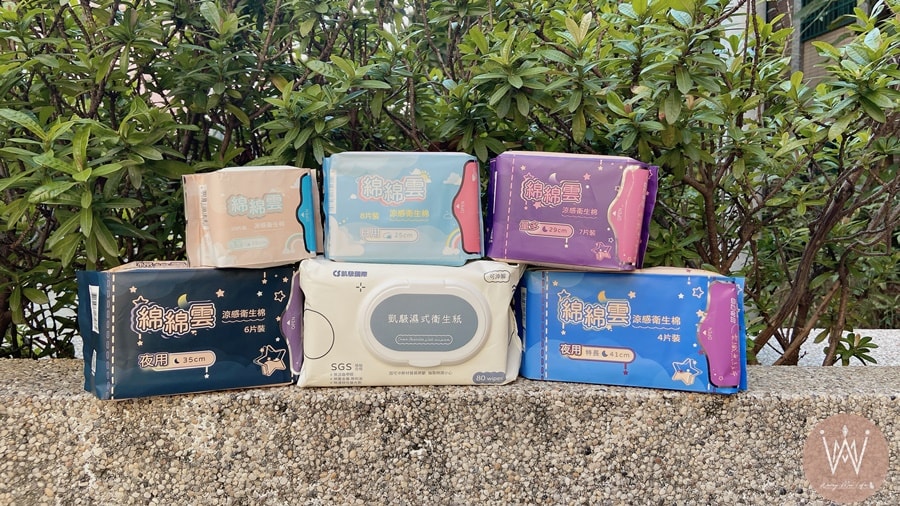 **綿綿雲涼感衛生棉** 來自日本,採用超親膚材質-Winnber雲織無紡布, 纖維材質是一般材質的1/4, 更加滑順、透氣、親膚, 給嬌嫩肌膚雲朵般的極致呵護。 5款尺寸專屬包裝,一眼快速辨認。 高舒適度: 類蠶絲級細纖維,1/4纖維直徑, 4倍滑順、親膚。 微涼感薄荷芯片: 添加微涼感薄荷芯片,清爽不刺激。 高吸水性: 高密度高…